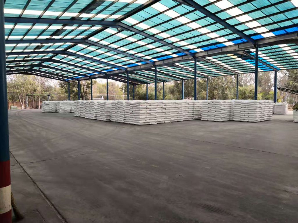 High-quality ammonium sulfate fertilizer is awaiting loading onto a vehicle for transportation to the port.